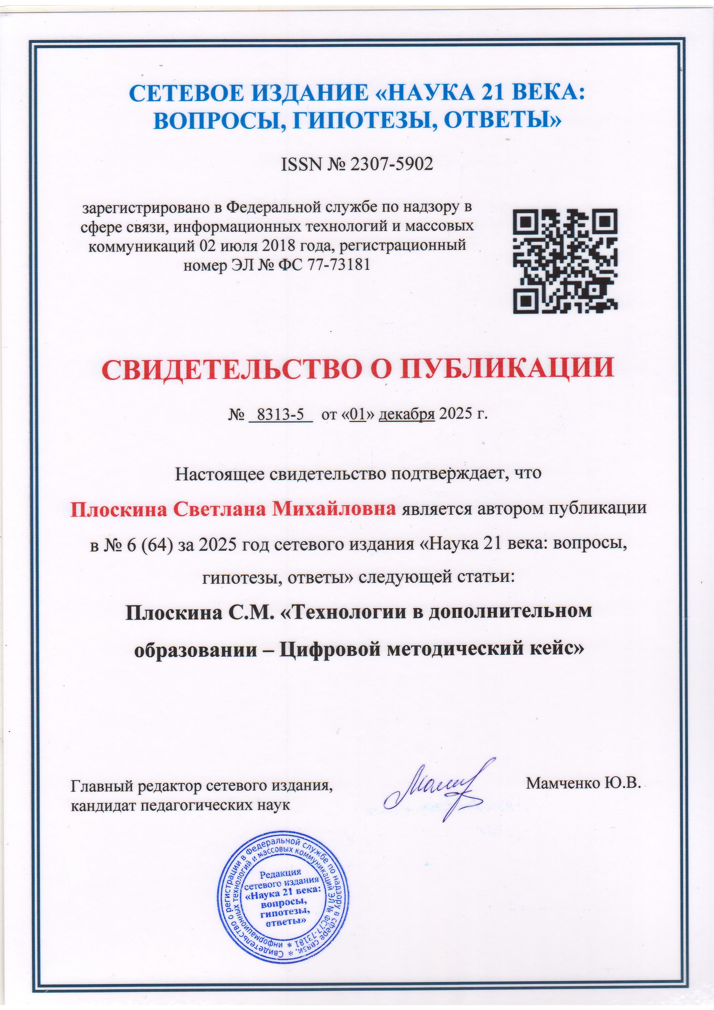 Опубликован 6(64) номер сетевого издания «Наука 21 века: вопросы, гипотезы, ответы». Сетевое издание «Наука 21 века: вопросы, гипотезы, ответы» относится к периодическому изданию и издается только в электронном виде. Заявки в следующий ближайший номер (1, (65)) принимаются до 30 января 2026 года!